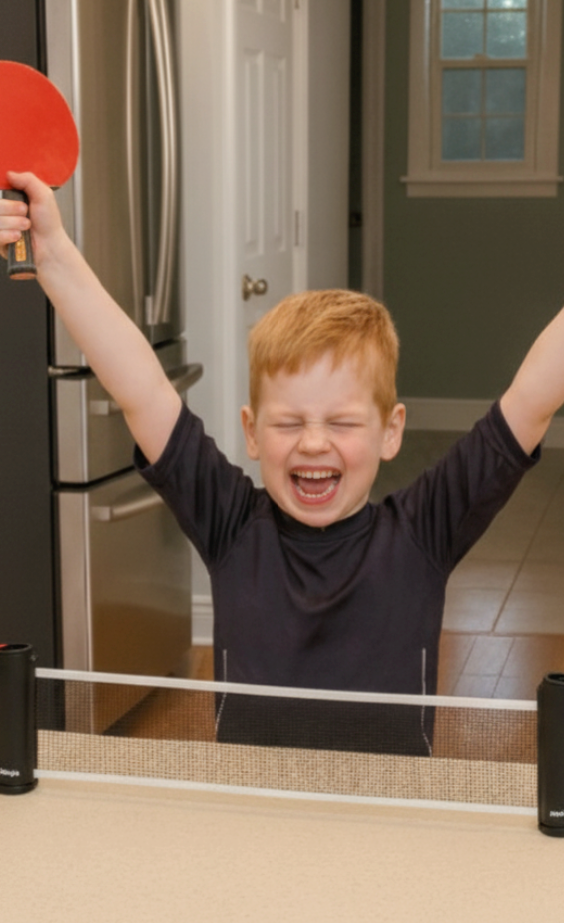 From kitchen counters to backyard BBQs, NetNinja turns any space into a ping pong arena.